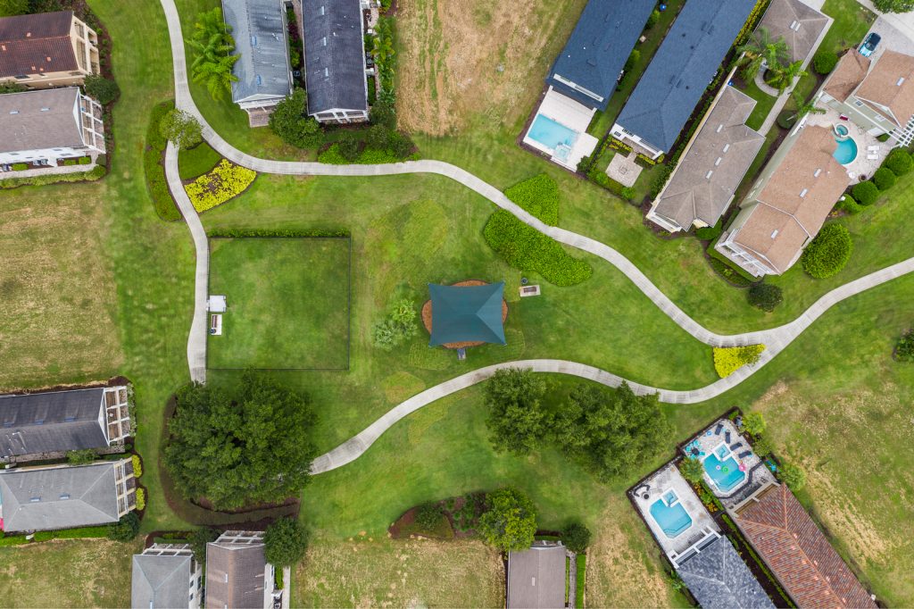 The Reunion Resort Neighborhood Liberty Bluff has beautiful views of the Arnold Palmer Legacy Course. Many homes here are court-yard-style homes with the main home and separate guest house. There are vacation homes of all sizes, from 4 bedrooms, all the way up to much larger 10+ bedrooms for large groups.